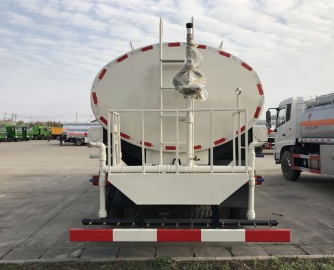 罐体容积20立方,罐体为椭圆或方形、采用5mm厚Q235碳钢板材制作、罐体舱内1.5米一道防荡板具有防波防荡作用。配威龙大功率专用洒水泵、具有自吸自排功能,标配前冲、后洒、侧喷、工作平台,平台上安装360°旋转洒水高炮,可连续调节成直冲状、大雨、中雨、毛毛雨、雾状。带自流阀、滤网、电子音乐喇叭、消防接口(可连接消防栓取水,可做应急消防用)。罐前量管(观察水位)、罐后爬梯、罐体上方安装罐口带安全护栏、罐侧双炮筒、两根钢丝塑胶管、罐体双层油漆工艺,表面金属油漆,具有防锈耐腐蚀的优点,其余厂家标配。